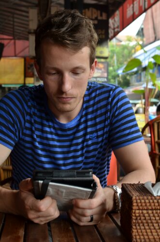 My view, much of the time: Dean reading the Lonely Planet!