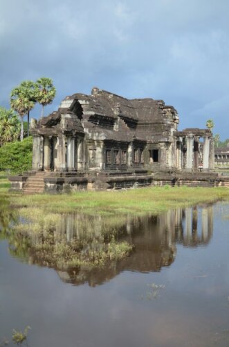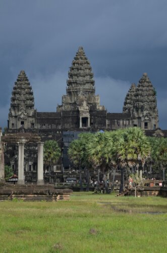 The most famous temple, which has five lotus flower style towers. After a bridge over an enormous moat, there is a 235m terraced porch across the front which leads to a 475m avenue approaching the main temple, flanked by two libraries and lily ponds either side. The main temple area is admired for its symmetry and has courtyards and exceedingly high, steep steps (because it should be hard to approach the gods). Many areas smell of bat urine and it drips on visitors from time to time!