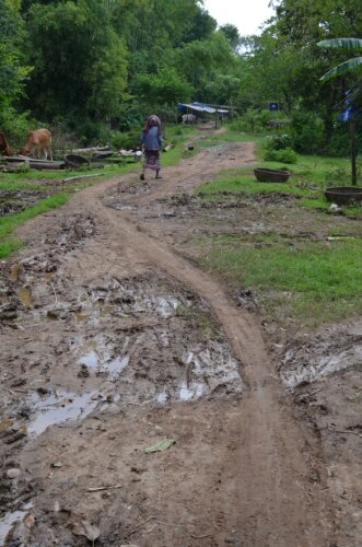 The bike riding experience itself was not quite so idyllic: the nice concrete path didn’t last long and the rainy season meant that we had to keep dismounting to squelch our way through deep mud. There were also several stubborn cows who insisted on blocking our progress! Eventually, after persevering for about 4km, the path became impassable so we turned back. Covered in mud, we returned our bikes and Denise and Tanja decided to go back to the mainland.