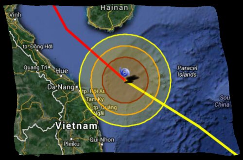 3:30pm: well it’s rained a lot, which may well have caused flooding in Hoi An’s less well protected structures, and there have been a few strong gusts of wind, but all in all I think it’s safe to say we’ve seen the worst of it. Although it’s apparently still a category 3 typhoon, judging by this satellite image, almost all the worst part is going to be over the sea now.