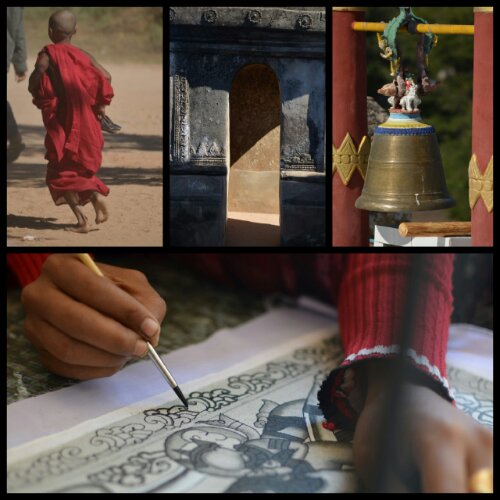 Various shapes, sizes and finishes differentiated them. Inside there were usually Buddhas, sometimes painted walls or carvings and persistent people selling things – paintings, lacquerware, bracelets, postcards (including tiny kids selling home made ones), and remnants of temples that were either fake or they shouldn’t have had them.