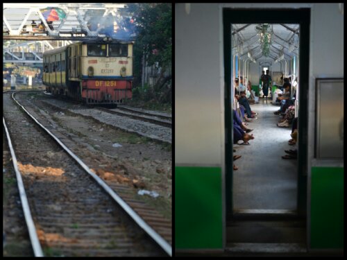 After Bagan, we travelled on a night bus to Yangon/Rangoon, the ex-capital city. We didn’t really like it! There were a few reasons: rip off accomodation, Dean got food poisoning, open sewers everywhere, dirt, dust and fumes, not much to do. But you win some, you lose some! We did quite enjoy these cakes and this train ride though: