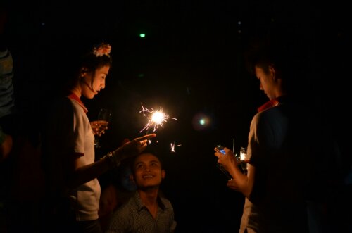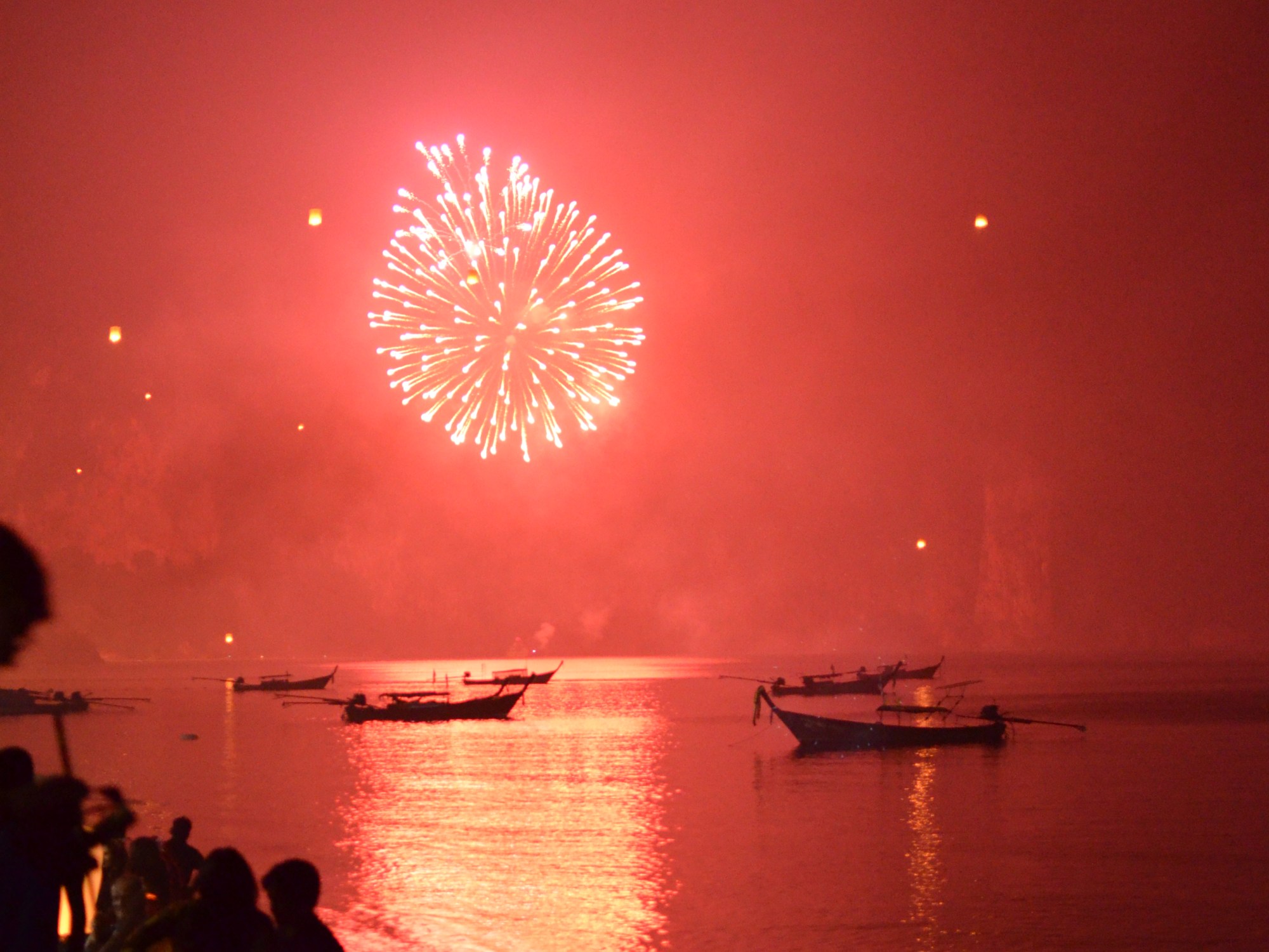 New year is a big thing in Thailand, much bigger than Christmas, so there were lots of locals out and about. Many of them, along with lots of tourists, were sitting on walls and steps down to the beach so we joined them. The sky was filled with hundreds of fire lanterns which people were launching with varying degrees of care/accuracy/skill. Occasionally one would career into the crowds insteads of lifting into the air so it wasn’t wise to get too settled! Several people also had sparklers or fireworks which, again, were set off at random so you had to keep your wits about you! At midnight the resorts set off their firworks, illuminating the sky and reflected in the sea, and a surge of many more lanterns floated away to tiny specks. All in all a very memorable new year.
