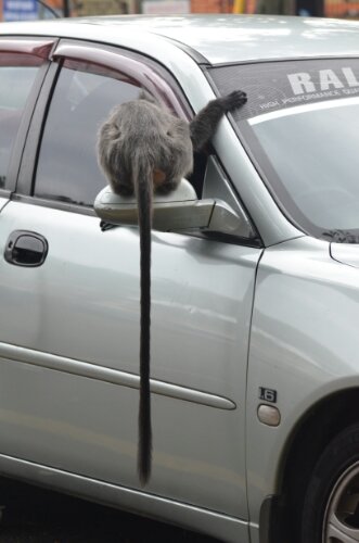 After the nature park, we bought some drinks and sat on a kids’ playground to drink them. Gradually we were approached and surrounded by a troop of about 30 monkeys! They didn’t come too close once they realised we had no food but, whilst we watched, various locals and tourists parked up and fed them. A bit irresponsible but at least the monkeys seem quite friendly.
