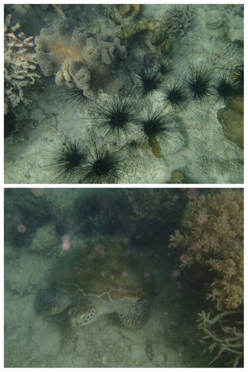 So Tuesday was an uneventful day except we did go snorkelling with the camera, which we dropped and nearly lost for good! There were plenty of colourful fish and coral but the highlight was definitely finding a turtle!