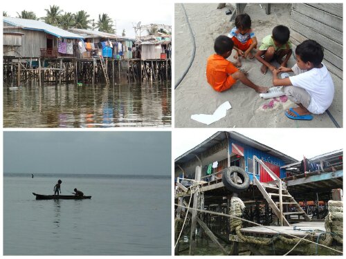 The island perfection was sadly tainted by a fair amount of rubbish and the sad sight of kids in wooden boats; usually the big one paddling, the small one bailing water out, both dressed in rags or nothing, both begging for food. Apparently the island’s population is around 2000, with 50% being under 14! Various locals, further out to sea, searched with a floating bowl for fish and crustaceans to sell to the Chinese tourists who were more than happy to purchases items to supplement their meals. The new craze among the kids on the island was a bottle with holes cut into it, filled with sand on string!