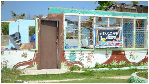 Our main inland destination was the schools. There’s a high school and an elementary school next to each other. We decided to go into the elementary school which has around 900 pupils aged 5 to 12. The classrooms formed a square around the playground but about half of them were roof-less (and some were missing a wall or two) so each class was being taught for half a day. The teachers not teaching that morning were cooking the dinner in big pans over fires at the edge of the playground.