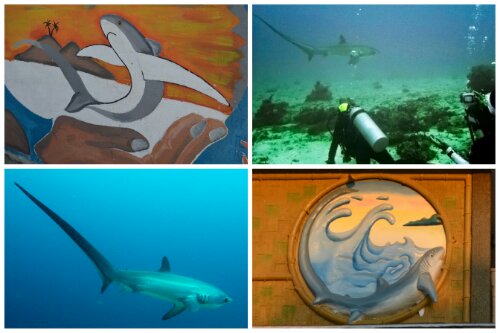 The actual dive entailed a 4:30am wake up which I wasn’t too keen on, but once we were in the middle of the sea with the phenomenally starry sky above us, I forgot all about it. Soon the sun began to come up which was beautiful and by 6:15 we were kitted up and jumping off the boat. We had about 5 or 6 sightings of the thresher sharks which seemed massive, graceful and actually not scary at all. At 27m, it was far too deep to take our camera so I just got these from the internet to show you what they look like (I had no idea until this week!), plus a couple I saw painted on walls: