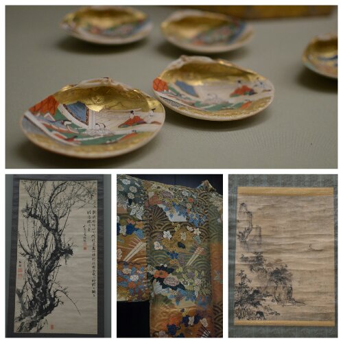My kind of museum with a sensible number of well-lit exhibits spread throughout different rooms of a high ceilinged building, some of which had English descriptions. There were plenty of statues, portraits, artefacts and calligraphy but we particularly enjoyed the 18th century ukiyo-e (woodblock prints/paintings of ‘the floating world’), the samurai swords and the various intricately woven items of traditional clothing – kosodes, furisodes and karaoris.