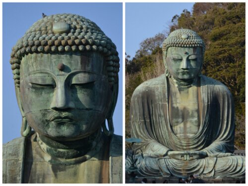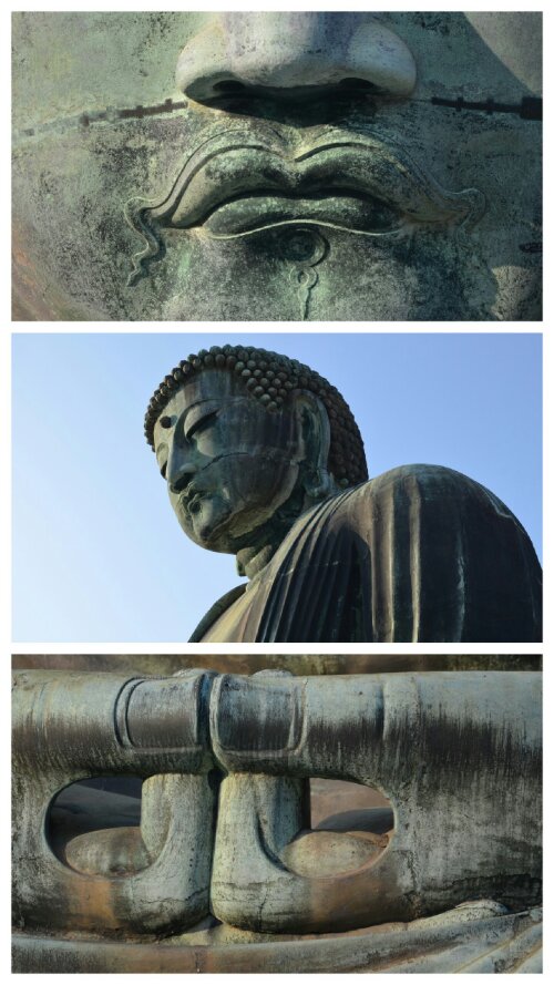 Next we headed for Kōtokuin, home of the famous Great Buddha, a bronze statue of Amida that at 13.35 meters is the second largest in Japan. Thought to be cast in 1252, the statue was originally housed in a giant temple hall, but the building was washed away in a tsunami. We paid ¥20 (about 15p) to go inside the statue’s belly.