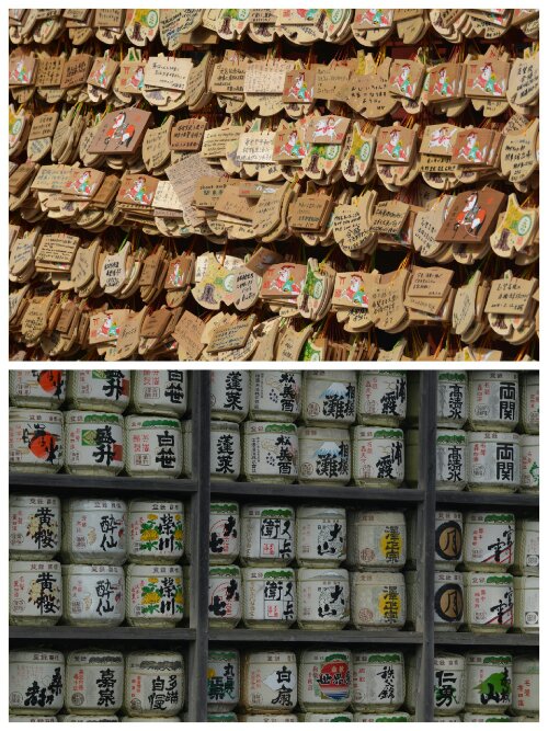 They might then go to draw a fortune. The one we tried (in Tokyo the next day) had a hexagonal prism-shaped metal box with a hole in one end containing 100 numbered sticks. You shake the box, tip out a stick then find the little wooden drawer with the corresponding number. Inside is a fortune: bad, medium, small, the final small and possibly some other types. I think if it’s bad you fold it and tie it to a nearby rope in the hope that the wind will blow away the bad luck.