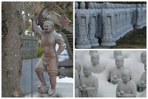 Our final destination was Hasedera temple which was really lovely. It was all on different levels including a high viewpoint over the city, all enhanced by the hint of blossoms beginning to bloom on the trees and the receding snow blanket on the floor. There was also a pond, a massive wooden Buddha and hundreds of little statues.