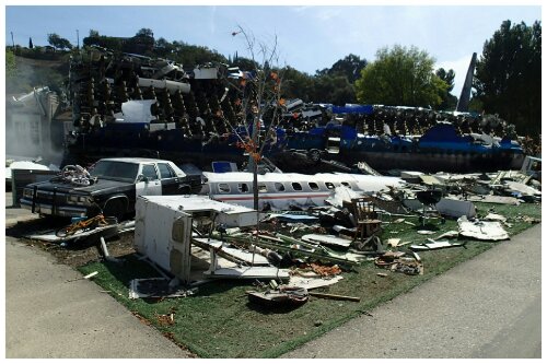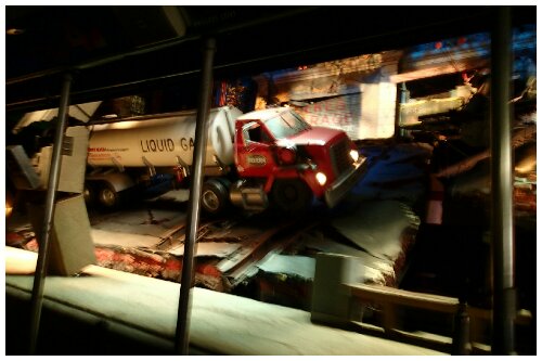 After that it was time to embark upon the famous Studio Tour around the back lot which lasted about an hour. You go around in a tram, guided by a man on a TV screen which also shows film clips. Highlights were: the world’s biggest 360° 3D experience where we were in the midst of King Kong endeavouring to save us from dinosaurs; a man appearing to remove a dead woman from Bates’ Motel (from Psycho); Whoville scenery from The Grinch; the plane crash from War of the Worlds; various famous movie cars; a simulated flash flood; loads of façades used in various films; a drive down Wisteria Lane; a moving scene from Earthquake where a tanker falls on the tram, a fire starts, a train collides into the tanker and then the whole place floods! All very interesting.