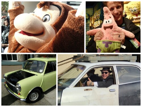 This real American day out at Universal Studios was a huge treat thanks to Harry and Ting. Three buses got us there for about 9am so we had time for bagels and cream cheese at The Coffee Bean, photos in front of the Universal sign and to buy our tickets before the gates were open at about 9:50. Although we were allowed in, we were prevented from entering the park, by a man in a police costume wielding a truncheon, until the 10 o’clock call of ‘action!’