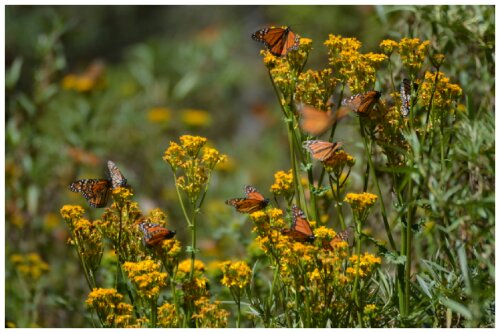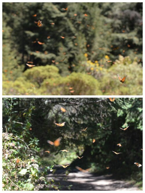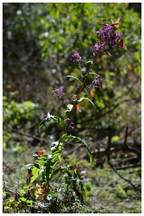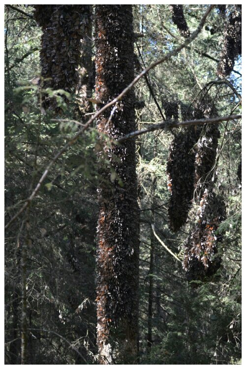 We were there a few hours, split between three different areas, but were prevented by ropes from approaching the actual trees. The warmer it got, the more active the butterflies became, carpeting the ground, decorating branches like leaves and flitting from flower to flower.