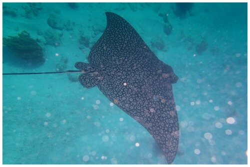 Although the coral landscape wasn’t as colourful as previous under water adventures, the number of big beasts more than compensated! We saw two green turtles, loads of large, beady-eyed trevallies and stingrays and at least three spotted eagle rays which were so incredibly graceful to watch.