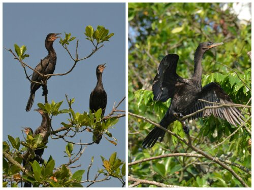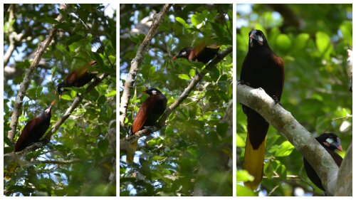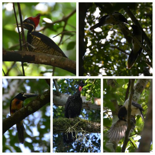 Birdsong filled the air so we spent a fair amount of time staring up at trees, trying to locate the culprits. Here are some I managed to sniper – not brilliant given how far away they were and the difficult light. The top left is a woodpecker and the bottom left is a toucan.