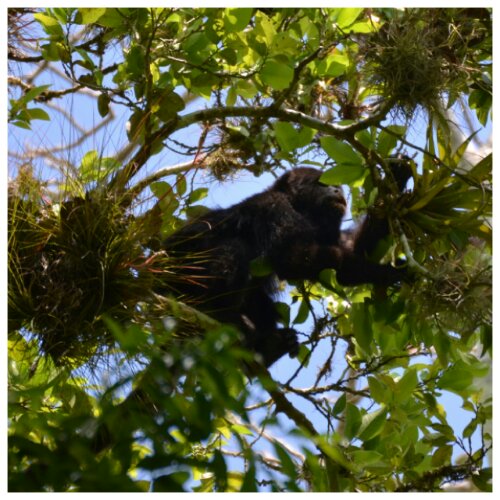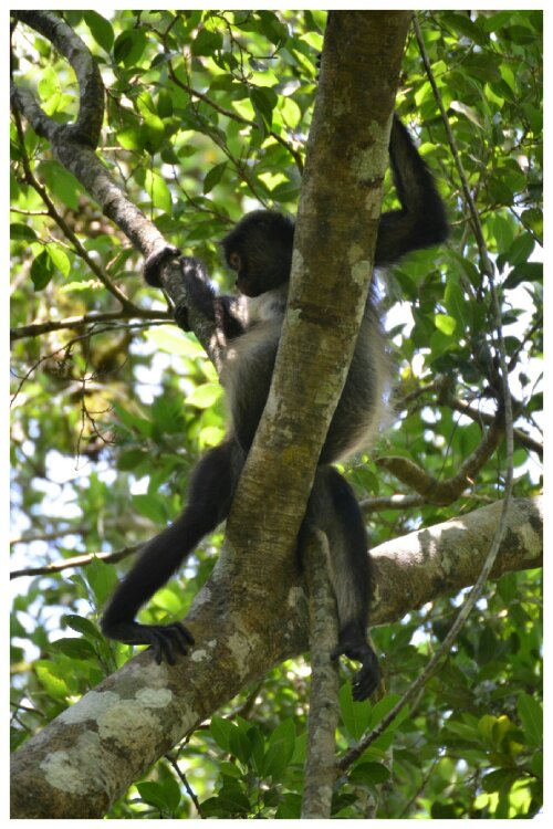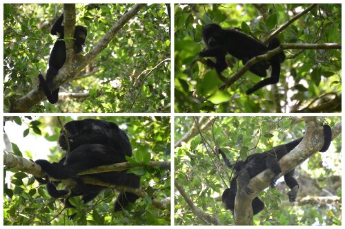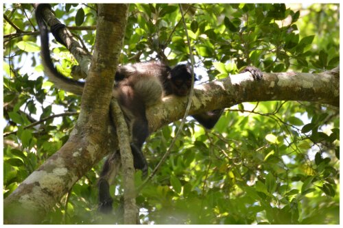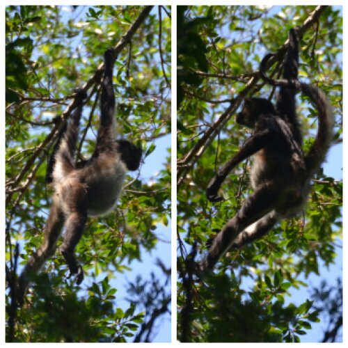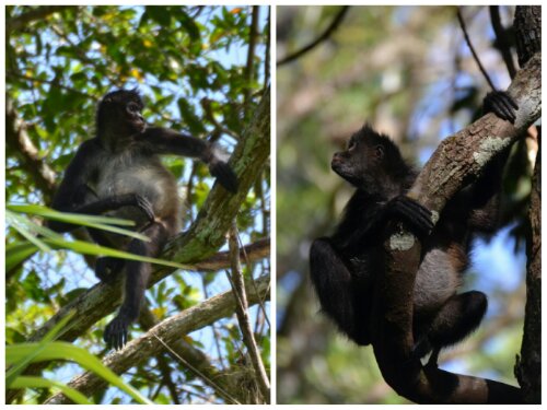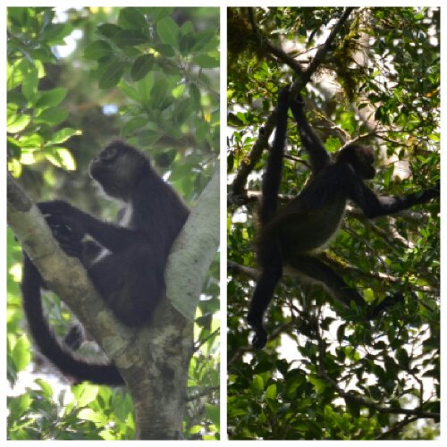 But the absolute highlight were the primates. It was an unusual combination of them being low enough in sparse enough trees for a good view, numerous, not particularly scared of the humans below yet also not in the habit of interacting with them or depending on them for food. We were really lucky to spot several groups despite it really being monkey nap time. There were two kinds, black howler monkeys and spider monkeys. We were trying to remember if we’ve seen howler monkeys before; we know we’ve definitely traipsed through jungles tracking their distinctive calls though.