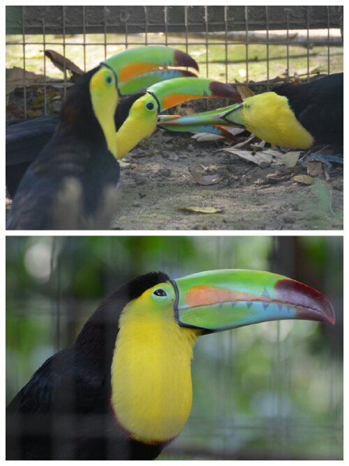 The keel-billed toucans were viscous – their beaks were very jagged on close inspection! There were four in an aviary together and one was attacking another whilst a third refereed and occasionally interjected (first picture has the victim pinned down). Later, one was roaming free and didn’t like having his photo taken so charged at me! I screamed and legged it!