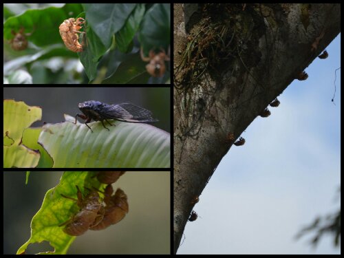 Below are just a few of the thousands of discarded cicada exoskeletons attaching themselves to coffee bushes and anything else around. The middle left is a live one, about 7cm long I think. On the evening we arrived they must have all reached the end of mating season so they we’re flailing around wildly in the final throes of death! OK but not when they’re in your bathroom!