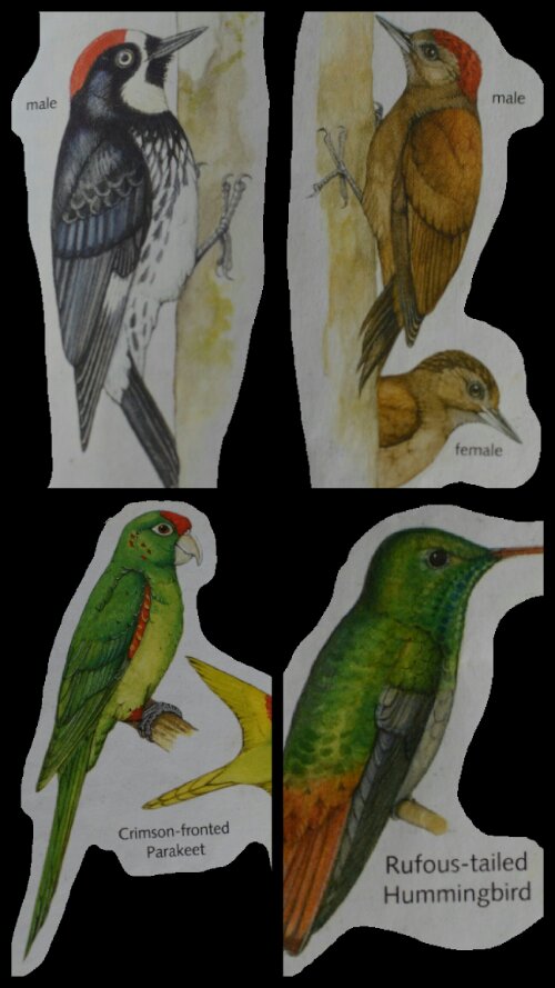 I attempted photographs (on this walk and a few others we did by ourselves) but the birds were all very far away so the photographs are pretty lousy really, especially now that they’re pixilated from collaging and zooming! So, since we had access to bird watching books, I thought I’d combine the photographs with the drawings so you can see what they’re meant to look like. When next to each other, you can see that a few were slightly wrongly identified but they’re close enough to give you an idea.