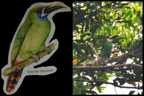 On Dean’s birthday-eve we got up early to embark upon a bird watching tour with our guide, Rodrigo, and Escarlet who interpreted for us. With binoculars and well-trained eyes and ears, Rodrigo tracked down lots of different species of bird then located them in a book so we could see them properly and learn their English names.