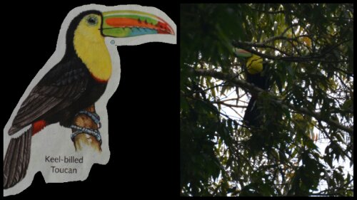 Our goal is to see a male resplendent quetzal before the trip is over; aren’t they amazing?! (It’s too long for a photo frame!)