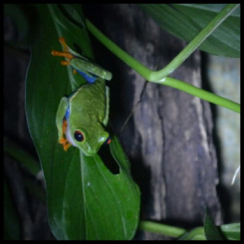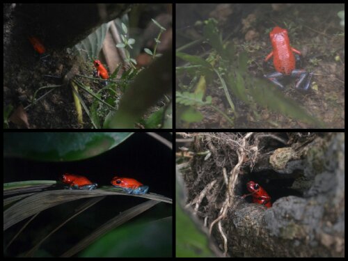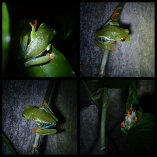 The reason we went twice was to see them in the day time and then again at night. On the second visit they were, as promised, far more active and, with the use of torches, really easy to find and photograph. I’ve got no idea what species most of them are except for my favourites, the red-eyed tree frogs, at the end. Despite being emblematic of Costa Rica, they’re not actually endemic to this cloud forest. You might need to turn up your screen brightness!