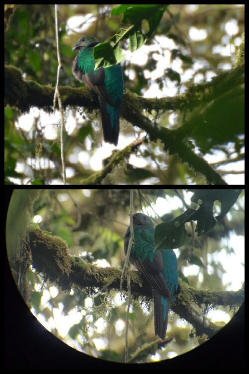 It might seem a little over the top but, when you know an animal like this is nearby and see-able, you can end up feeling compelled to go to great effort to catch a glimpse of it. For us this meant not one but two 5:30am starts and using our wedding gift from Lesley Winfield to pay for a guide, Elbertho, to take us hiking in Curi-Cancha reserve the first day (no joy!) and Monteverde Cloud Forest the second day. Here, at last, we saw a nesting pair and were able to view and photograph them through Elbertho’s telescope. They were truly wondrous and definitely worth the effort!
