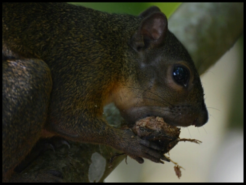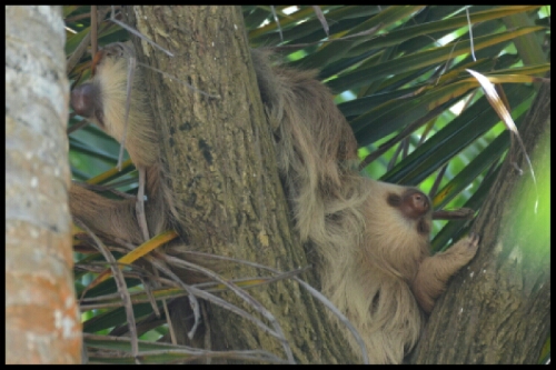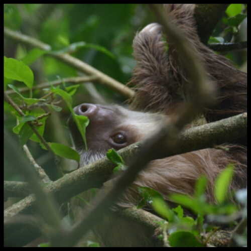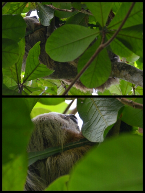 Howler monkeys woke us in the morning; toucans, parrots and countless other birds filled the trees; agoutis pottered about looking for food; the resident ‘puppy’ bounded about trying to entice playmates; and sometimes a wild sloth visited for a doze!