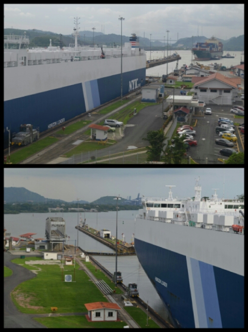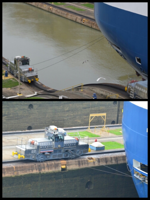 On another day I went to visit it and was able to watch a couple of huge ships passing through the Miraflores locks, steered by the little tug vehicles.
