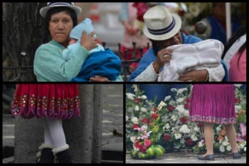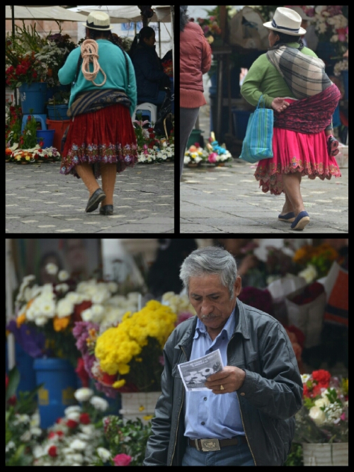 Walking down the steep hill into the centre of the old town we passed lots of women in colourful traditional clothes: thick shawls over cardigans, tights or knee length socks, woollen or velvet skirts, sensible black shoes with chunky heels, long jet-black plaits and hats somewhere between a bowler and a trilby sometimes sporting a peacock feather. Often they had a child or their wares in a shawl tied over their back. The streets and plazas were all very busy with vendors, school trips, lunching friends, shoe shiners and relaxed retirees.