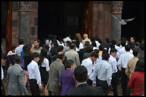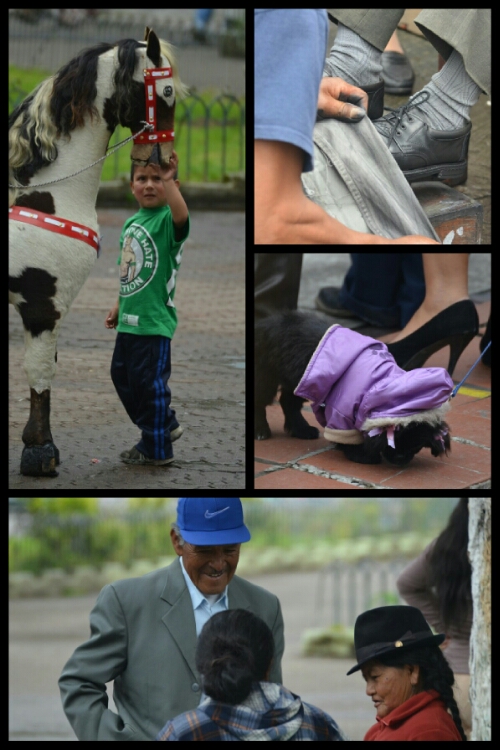 On Saturday morning, we loitered in the square, across from the very, very busy church to people-watch. It was a great opportunity to see the contrasts between traditional and modern, old and young, devout and not.