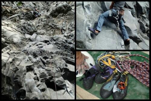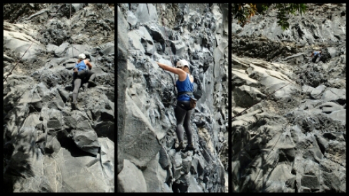 We decided to try outdoor climbing and have another go at white water rafting thanks to Joe Malik, Becki and Martin McBride and Jonny Cole. First was climbing. Our guide, Marcelo, took us to a spot next to a very fast flowing river. The wall we were to climb was made from a solidified wave of lava which had created an overhang protecting the wall from the rain.