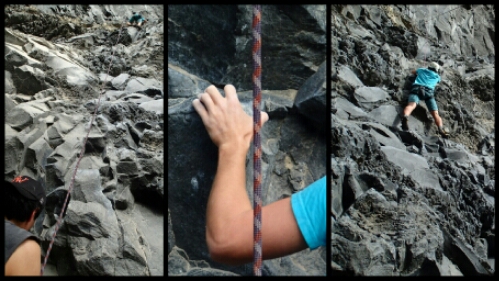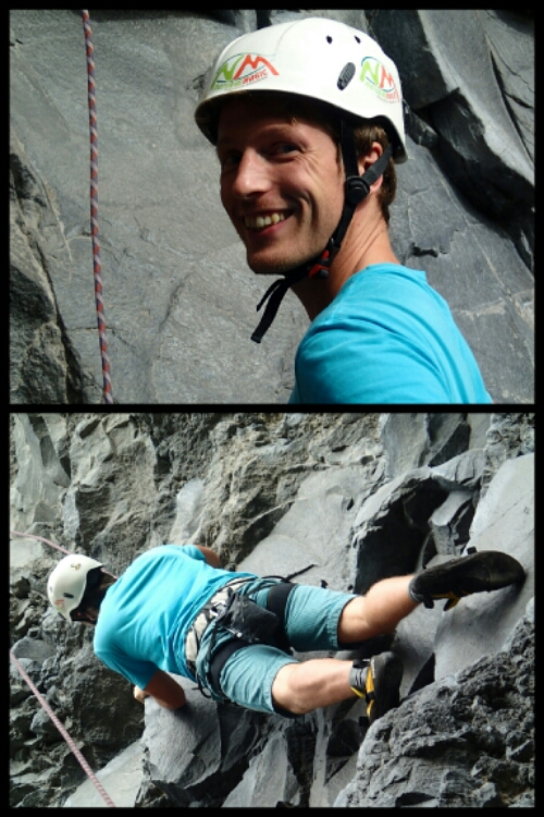 We followed this pattern, moving from route to route for a few hours. Although we’ve done lots of indoor climbing, it was quite a while ago and this was way harder because of the need to grapple about to find suitable hand and foot holds. Being so very out of practise, it wasn’t long before our muscles ached and our limbs shook! It was still really fun though.