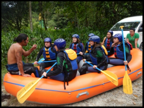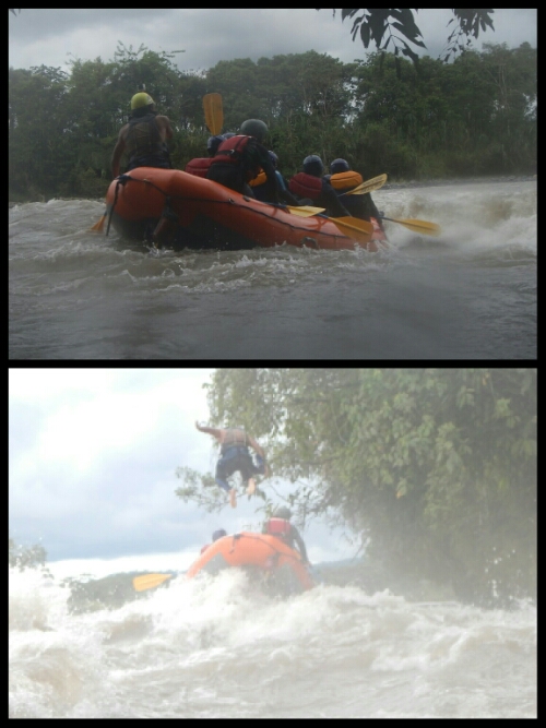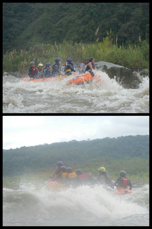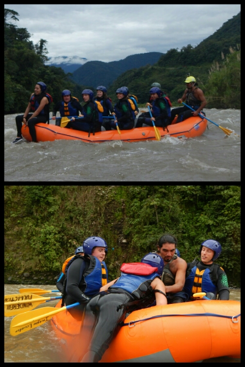 We were still very much feeling the impact of climbing the next morning when we began our rafting excursion! Kitted out with wetsuits, helmets and shoes, we drove 45 minutes to the edge of a river where we changed and were given our safety briefing by our super-excitable instructor, Patricio, and his equally hyper-active accomplice, Mariko. There we 5 other tourists in the boat with us, 3 English people and 2 Ecuadorians.