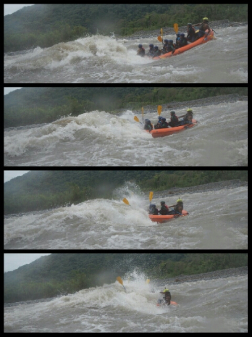One of the Ecuadorians didn’t seem to want to paddle so was made to sit astride the front of the raft giving Patricio opportunity to push her in several times in addition to the many occasions she fell in.