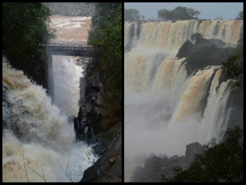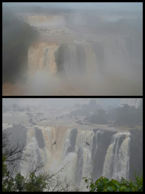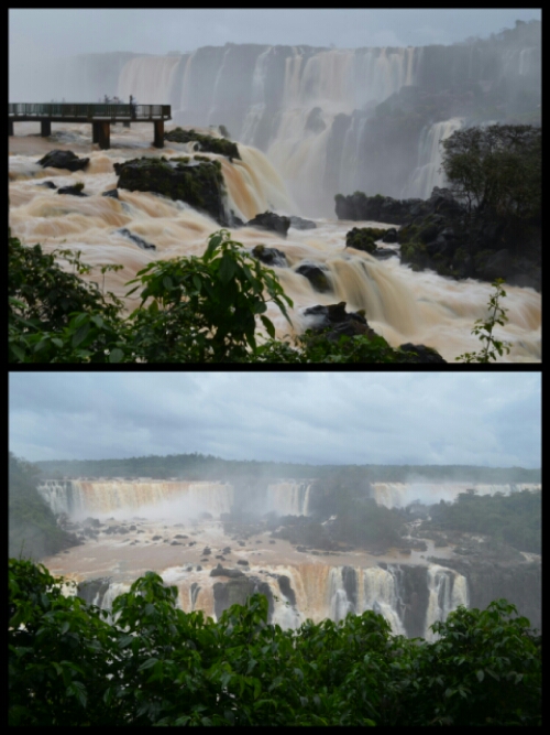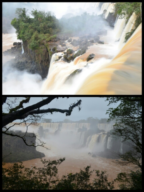 Photography was a challenge to say the least! There was a lot of mist which retreated only for a few minutes at a time; the cloudy sky was very bright in contrast to the trees; the falls’ spray plus the rain made our cameras very wet very quickly, repeatedly; there were hundreds of people to contend with; I don’t own a tripod; it’s quite hard to make brown water appear pleasant! And all this on top of the usual reduction in quality resulting from me having to use this collage app! Hopefully it’s possible to look beyond these things and glimpse the sheer magnificence and enormity of these awe-inspiring creations.