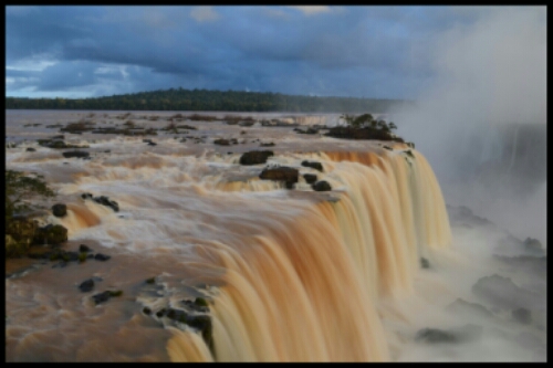 The border of Argentina and Brazil is home to the resulting Iguaçu falls; 150 – 300 in fact, depending on the season. Their heights range from 60–82m and they span 2.7km. The average flow rate is apparently 1,756 m3/s which I guess is a fairly difficult statistic to imagine! Let’s just say they flow very quickly!
