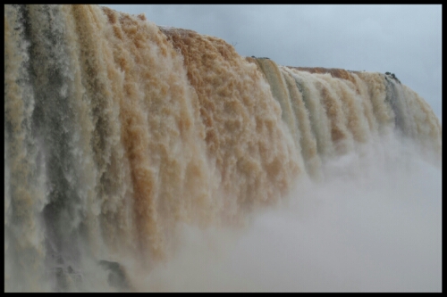 We spent a day exploring the Argentine side and an afternoon on the Brazil side, the latter thanks to Emily and John Greenbank 🙂 Both were pretty unfortunate days in terms of weather (rain and cloud) but the falls were incredible nonetheless. As I said in my last post, I visited them seven or so years ago and, I now realise, at a very opportune time of year. Whereas in April the water was clear with sunshine, rainbows and butterflies in abundance, in July it’s muddy brown but there seems to be a lot more of it.