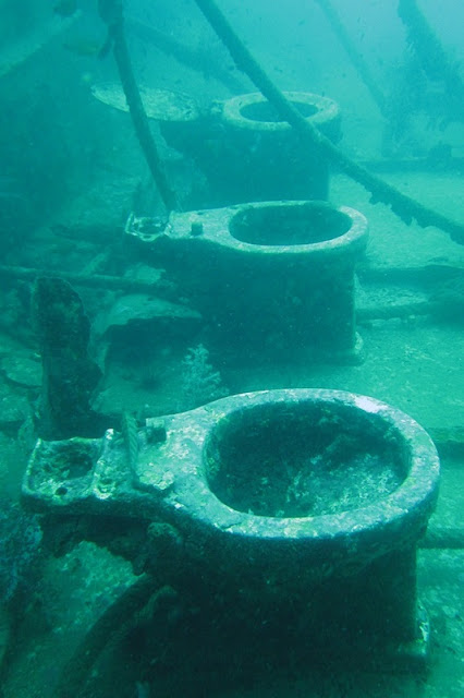 Anyway, now the disintegrated wreck has been taken over by lovely white and lilac corals and is home to all manner of sea life. Some of the structure has collapsed over the years but you can still swim through the car deck, entering via a set of toilets! There were also lots of small reef fish, parrotfish, poisonous lionfish, schools of juvenile barracudas and a group of moorish idols.