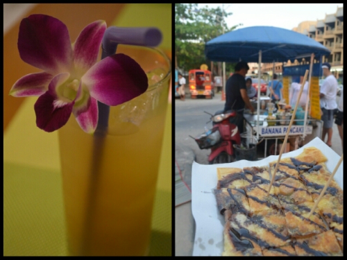 Below are a few of our favourite dishes: som tum (papaya salad), pad Thai gai, mango sticky rice, green curry, khao pad yama, pineapple juice with an orchid (just because) and street vendor pancakes: