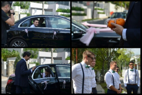 Ting’s younger brother, Yi Ming, approached the wedding car and opened the door for Harry (according to the internet, this is to test the groom’s patience as he waits but there seem to be hundreds of differing Chinese wedding customs so I’m not sure if that was the meaning in this instance!). He then handed Harry two oranges representing good fortune because they symbolise gold.