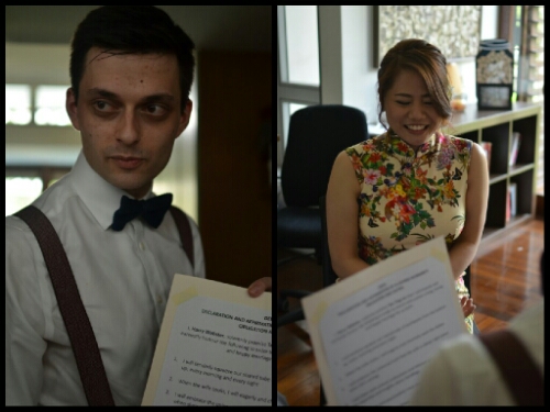 They sat down at the registrar’s table, with our dad at one end and Ting’s father at the other. None of the next part was amplified so I can only assume the registrar was talking them through the process and maybe attending to some formalities.