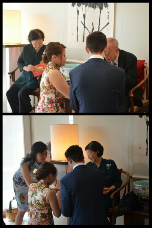 After that, but standing, was the long list of aunts and uncles. Tea was sipped, envelopes were given, words and sometimes hugs were exchanged, photographers snapped. Li Ling had her turn, as did Dean and I, followed by Adam and Claire. Cousins were served too.