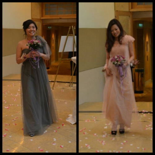 Soon we took our seats, Harry waited nervously at the front with Adam and James, and the music began to play. In came Li Ling in an elegant grey dress and then Xiang in pink, taking their places on the opposite side of the room to us.