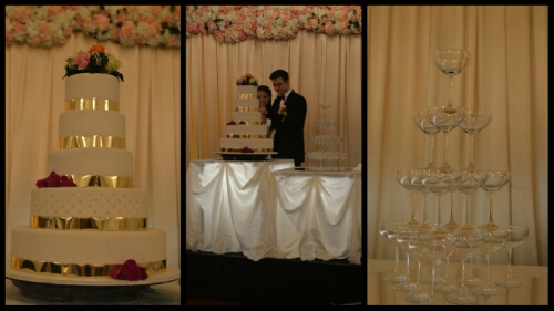 Towards the end of the evening Harry and Ting cut the cake and opened champagne which they then cascaded over a tower of glasses.