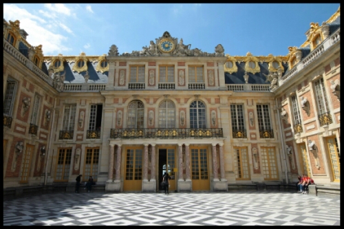 Deciding to spend the day at the palace of Versailles, we embarked upon a fairly complicated journey there and joined the line for tickets. The king’s bedchamber was the middle room in this picture: