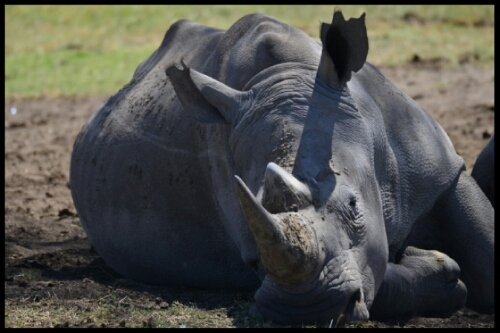 Late in the day we followed radio intelligence to this group of white rhinos, snoozing under a tree with some buffalo. Luckily (for us, not them), the buffalos got restless and disturbed them so we had the opportunity to see them stand up and move about a bit.