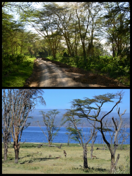 On Sunday morning, as Kenyans were largely dressed in their Sunday best and heading off to church, we embarked upon the second part of our safari with David – Lake Nakuru. We’d selected it for a change in scenery – forests and water – and for the chances of seeing rhinos. We weren’t disappointed in either case.